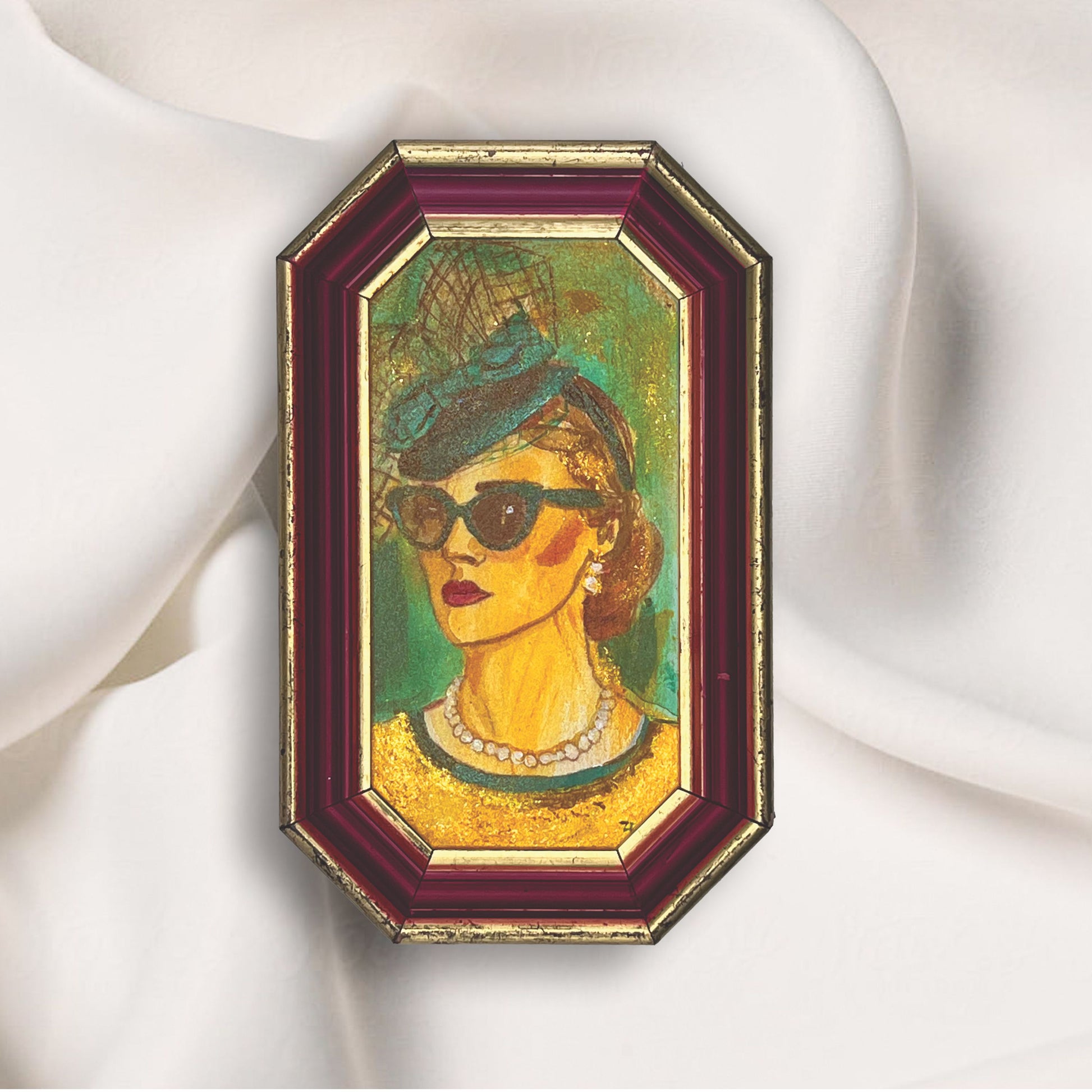 Frame is a stunner I found in an antique shop, painted in both watercolor , acrylics and gold leaf paint. I hope you love her. She was hard to photograph but lovely in person.