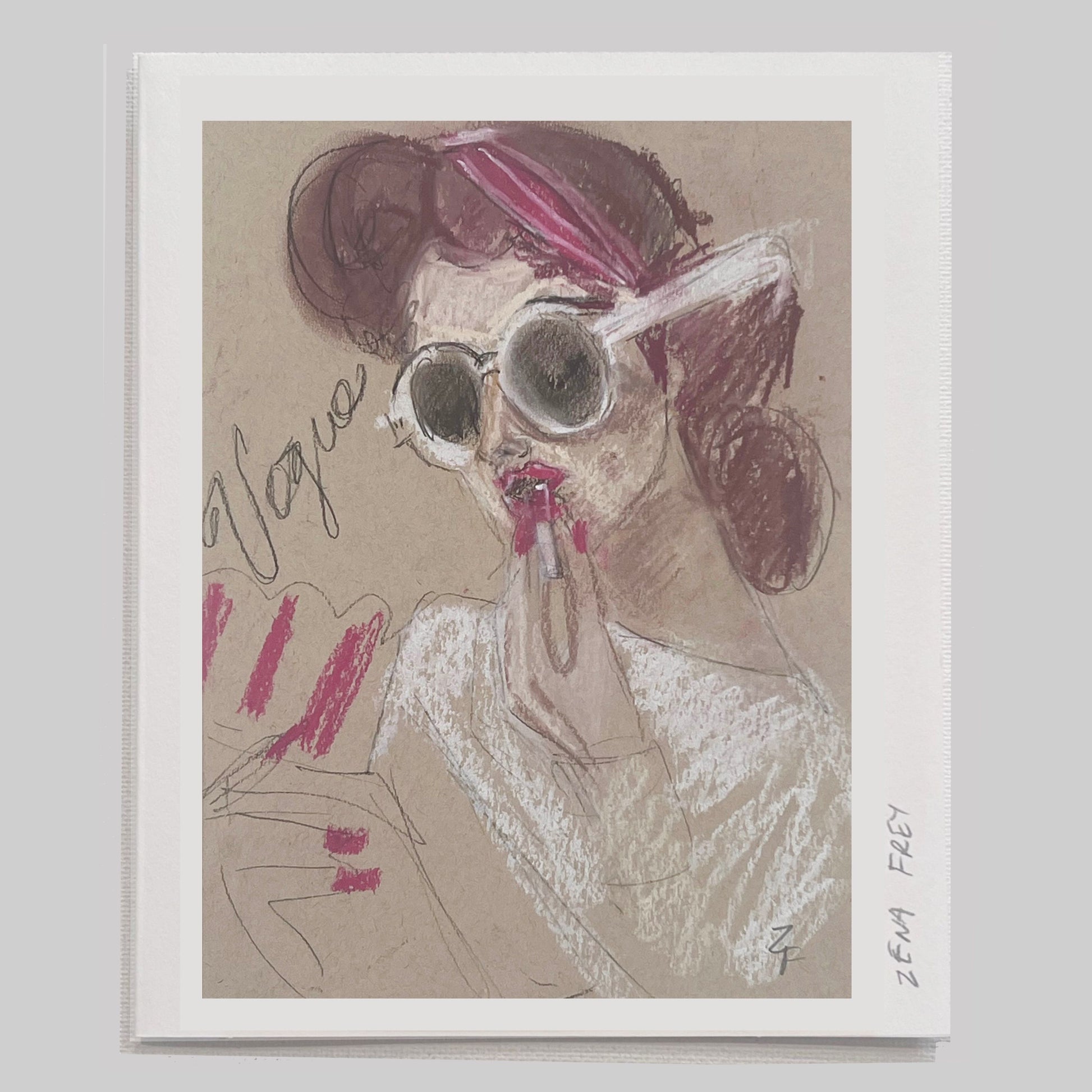 This elegant art card features a hand-drawn fashion illustration with a timeless vintage flair. Rendered in soft tones of charcoal, blush, and cream, the figure is styled in a chic ensemble adorned with layered pearls and a cloche hat — evoking the sophistication of 1920s Paris and New York. Subtle handwritten notes and washes of color add to the artwork’s charm, making it both modern and nostalgic.