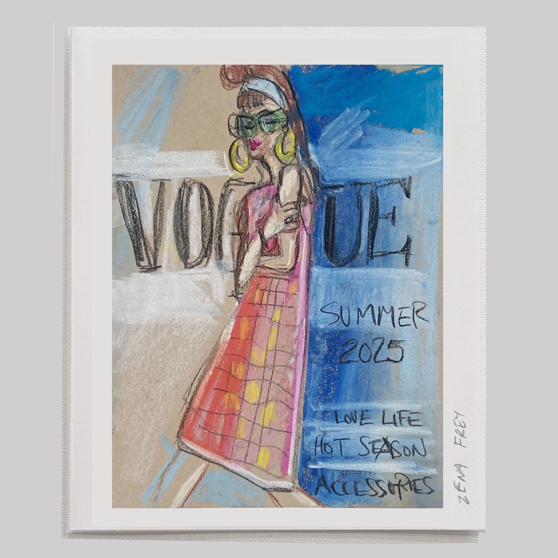 This elegant art card features a hand-drawn fashion illustration with a timeless vintage flair. Rendered in soft tones of charcoal, blush, and cream, the figure is styled in a chic ensemble adorned with layered pearls and a cloche hat — evoking the sophistication of 1920s Paris and New York. Subtle handwritten notes and washes of color add to the artwork’s charm, making it both modern and nostalgic.