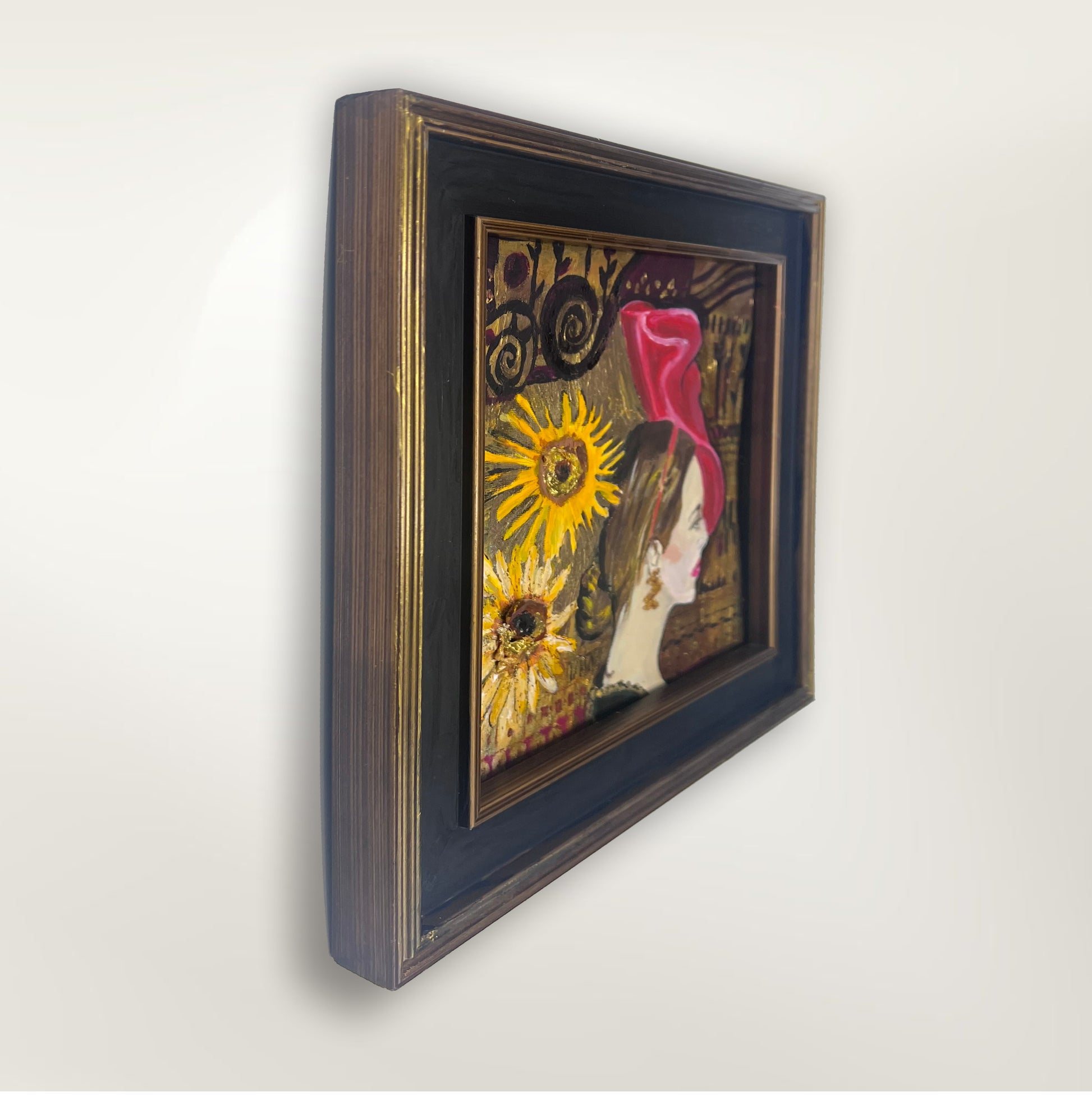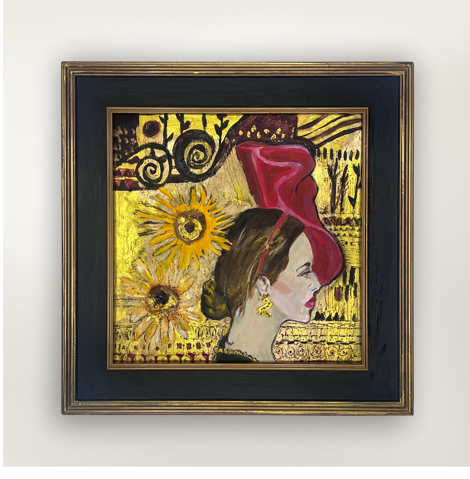 A portrait of a woman born into brilliance. She is the daughter of Gustav Klimt-an artist in her own right-immersed in the golden textures and ornamental beauty of her father's legacy. The shimmering motifs around her speak to the influence of his iconic style, yet she stands alone dignified, not as a shadow of his greatness but as a continuation of it.