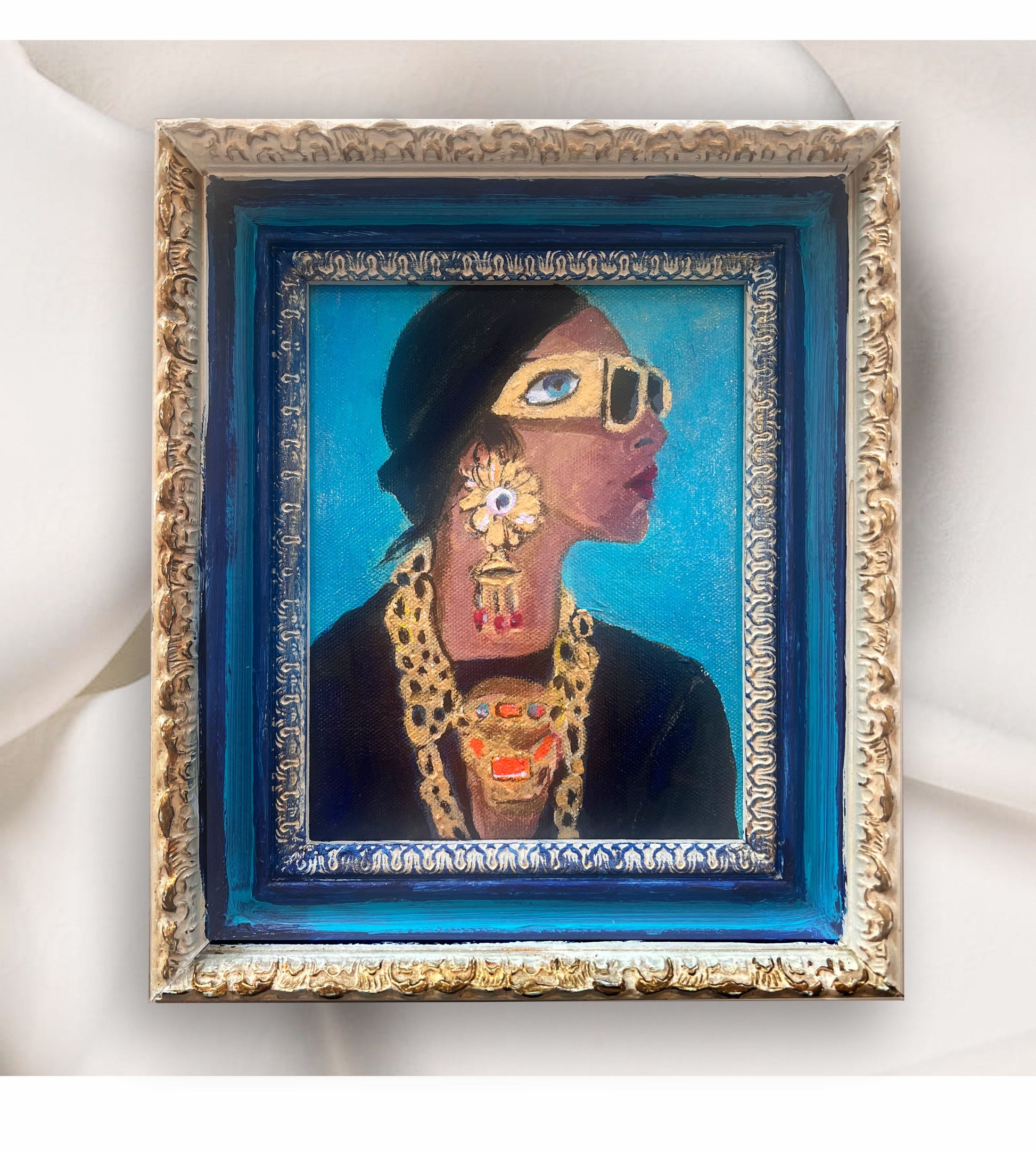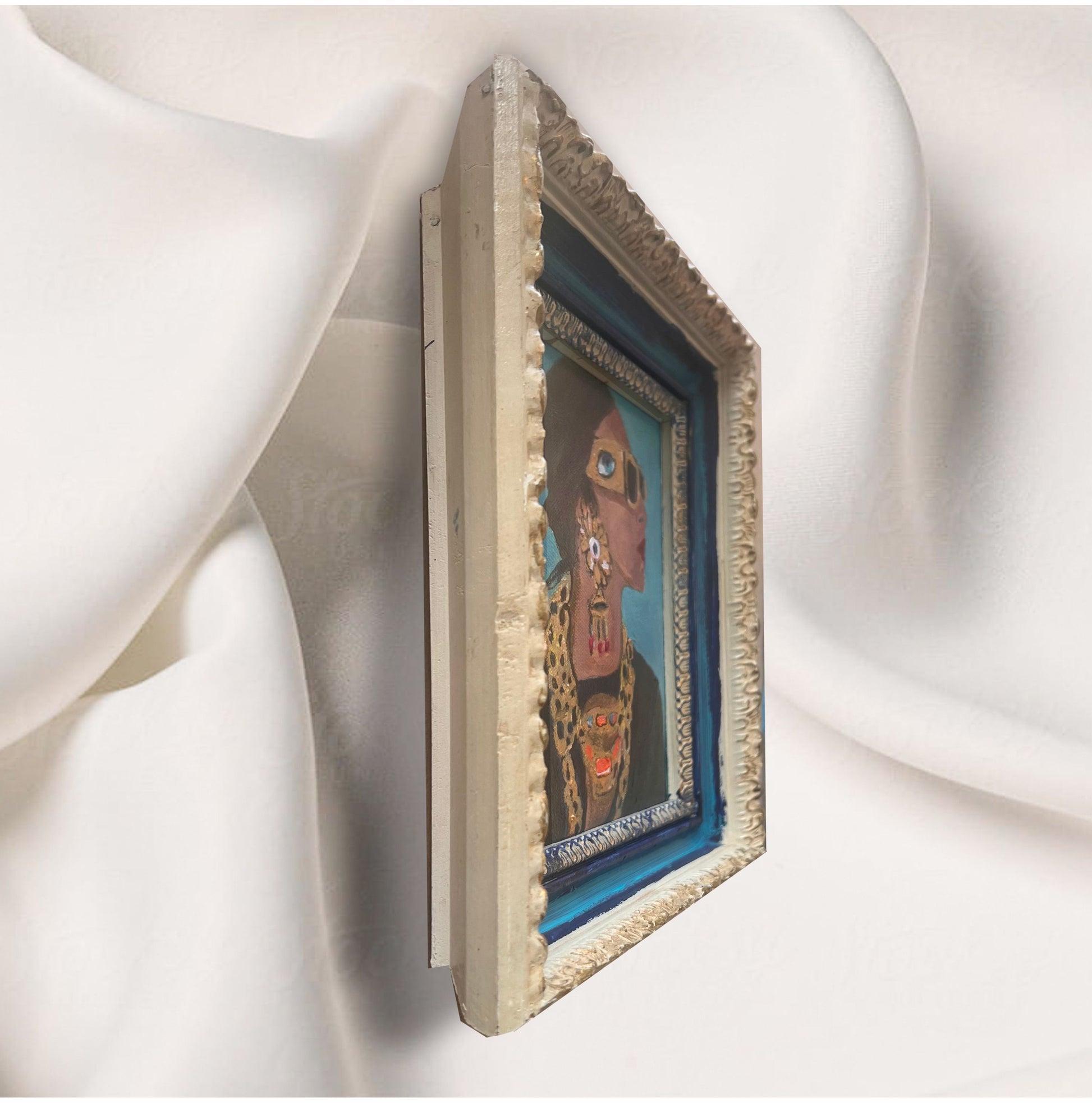 An original painting housed in a painted antique frame.