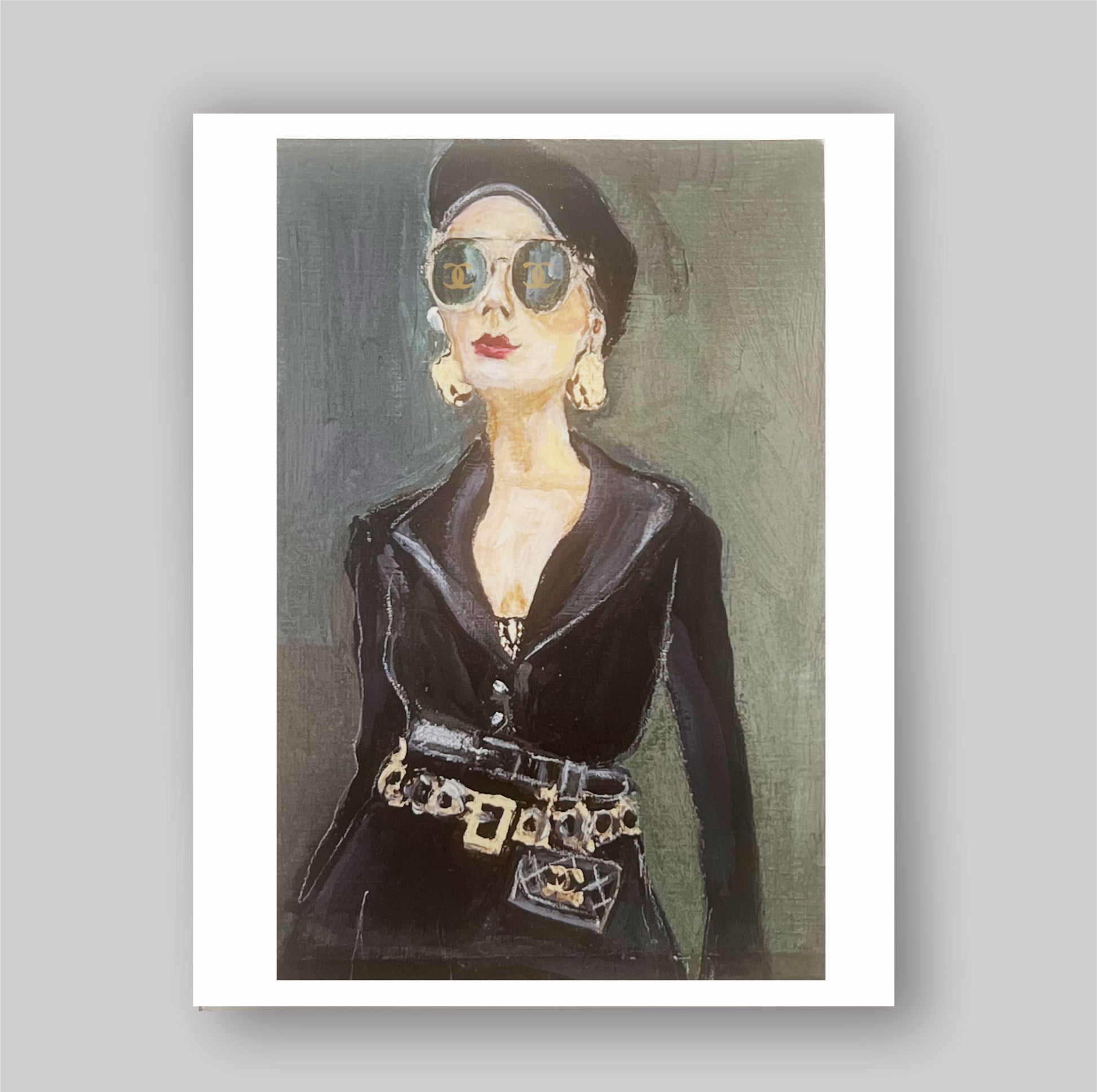 This elegant art card features a hand-drawn fashion illustration with a timeless vintage flair. Rendered in soft tones of charcoal, blush, and cream, the figure is styled in a chic ensemble adorned with layered pearls and a cloche hat — evoking the sophistication of 1920s Paris and New York. Subtle handwritten notes and washes of color add to the artwork’s charm, making it both modern and nostalgic.
