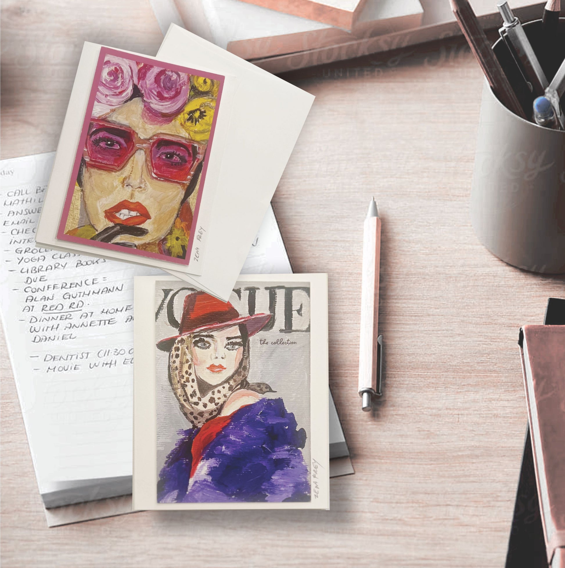 Giclee print hand cut on each card for added dimension. Each card comes with matching envelope and acetate sleeve for gifting and for added care.