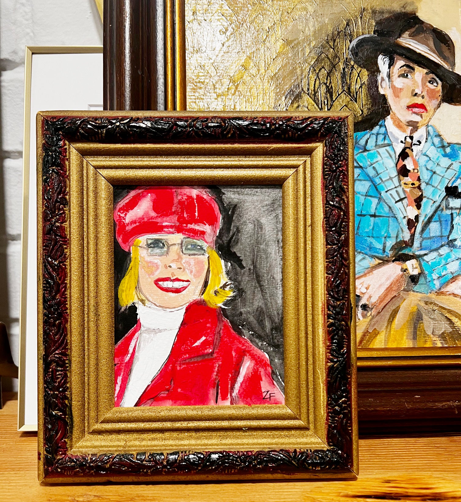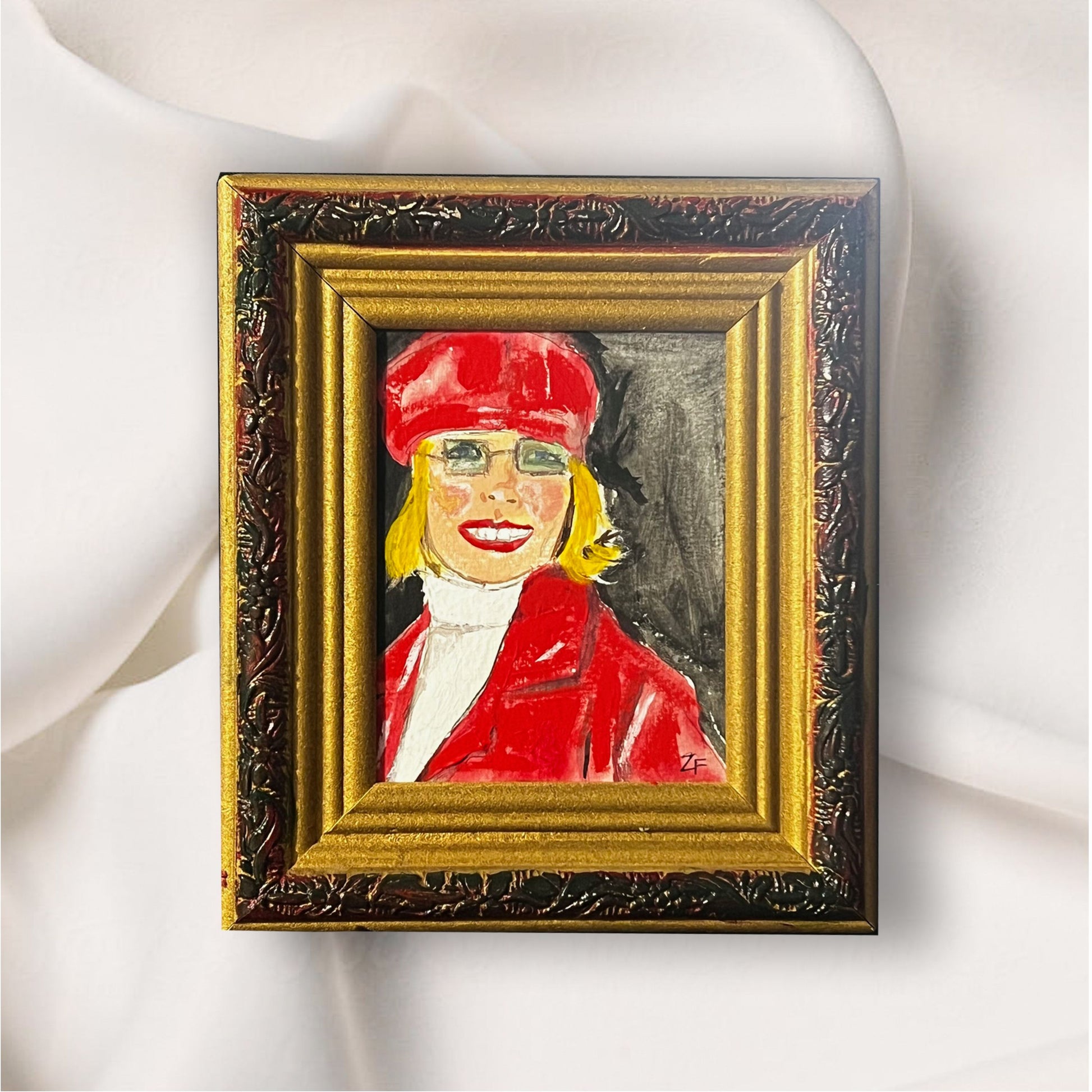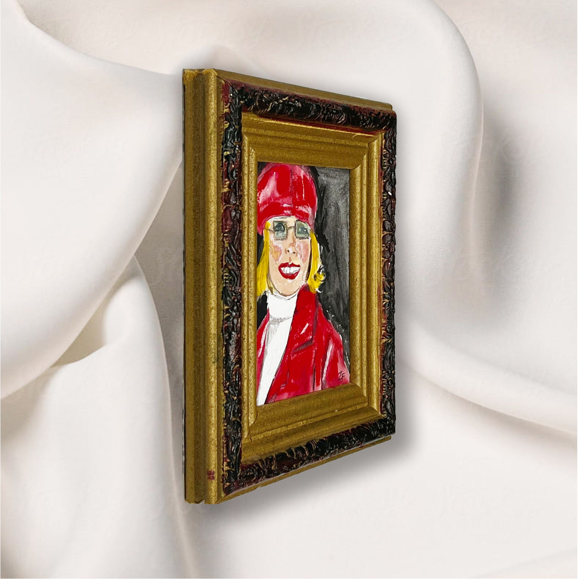 She loved shopping in vintage shops, therefore I placed her in a mini gold vintage frame from her beloved city in Los Angeles.