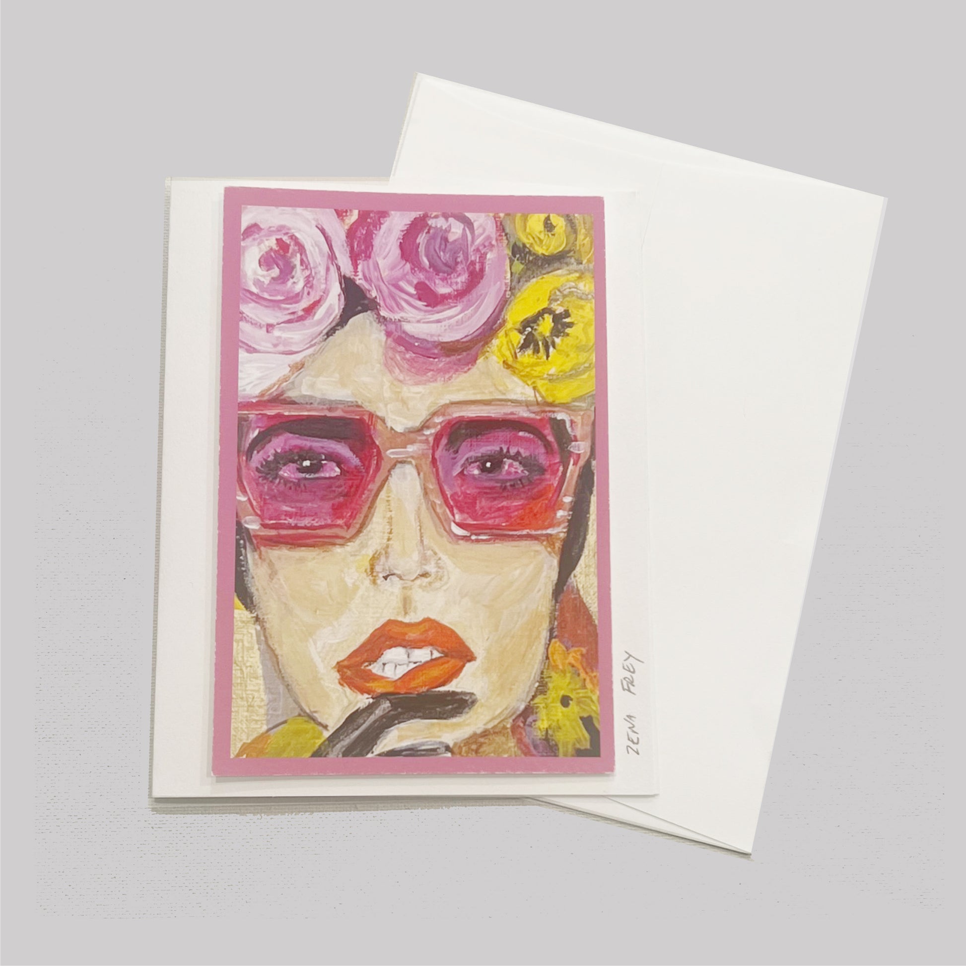 Giclee print hand cut on each card for added dimension. Each card comes with matching envelope and acetate sleeve for gifting and for added care.