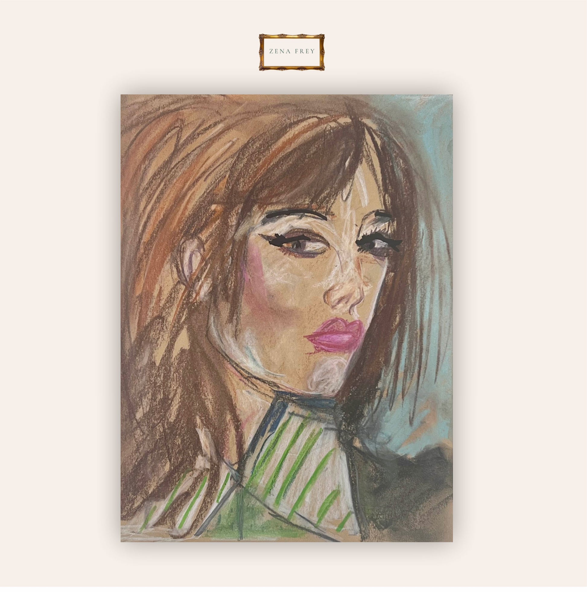 This piece is part of my ongoing series of pastel fashion illustrations, a heartfelt ode to my college days studying fashion in New York City. Each illustration captures the spirit and energy of that formative time- where creativity, style, and self-discovery converged in the city that never sleeps. Rendered in soft pastels and delicate watercolors, the work evokes both nostalgia and timeless beauty of fashion as art. Size of art 9 x 12