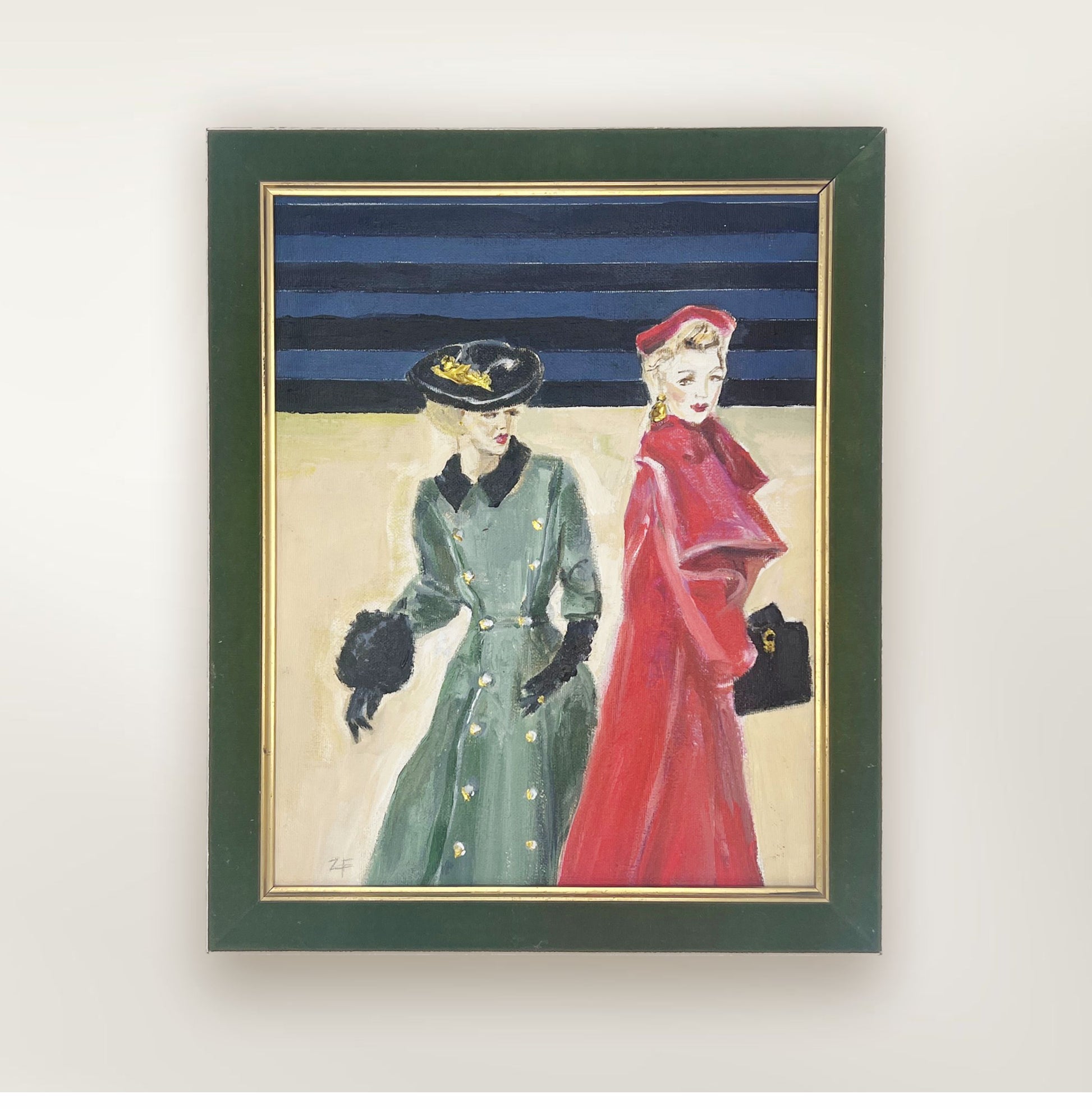 The Girlfriends is a heartfelt tribute to my love of nostalgic portraiture, inspired by the fashion spirit of the 1940s and 1950s. Painted in rich layers of oils and acrylics, with delicate touches of gold leaf, the piece radiates vintage charm and feminine strength.