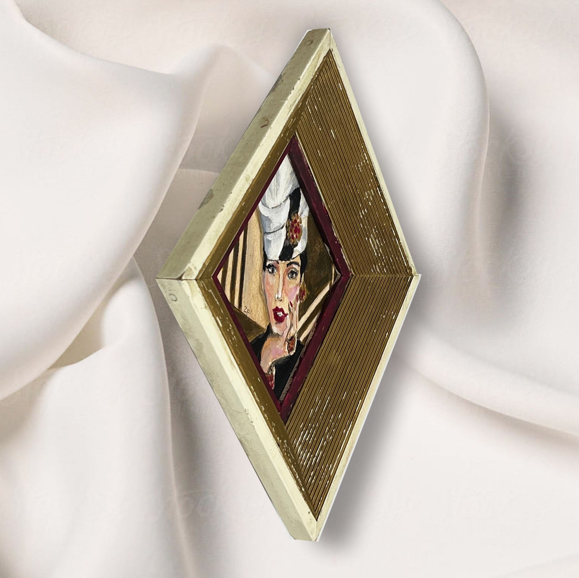 Frame is a gorgeous vintage find, I had purchased a set of 3 beautiful diamond layout frames in an antique shop in the Desert of California.