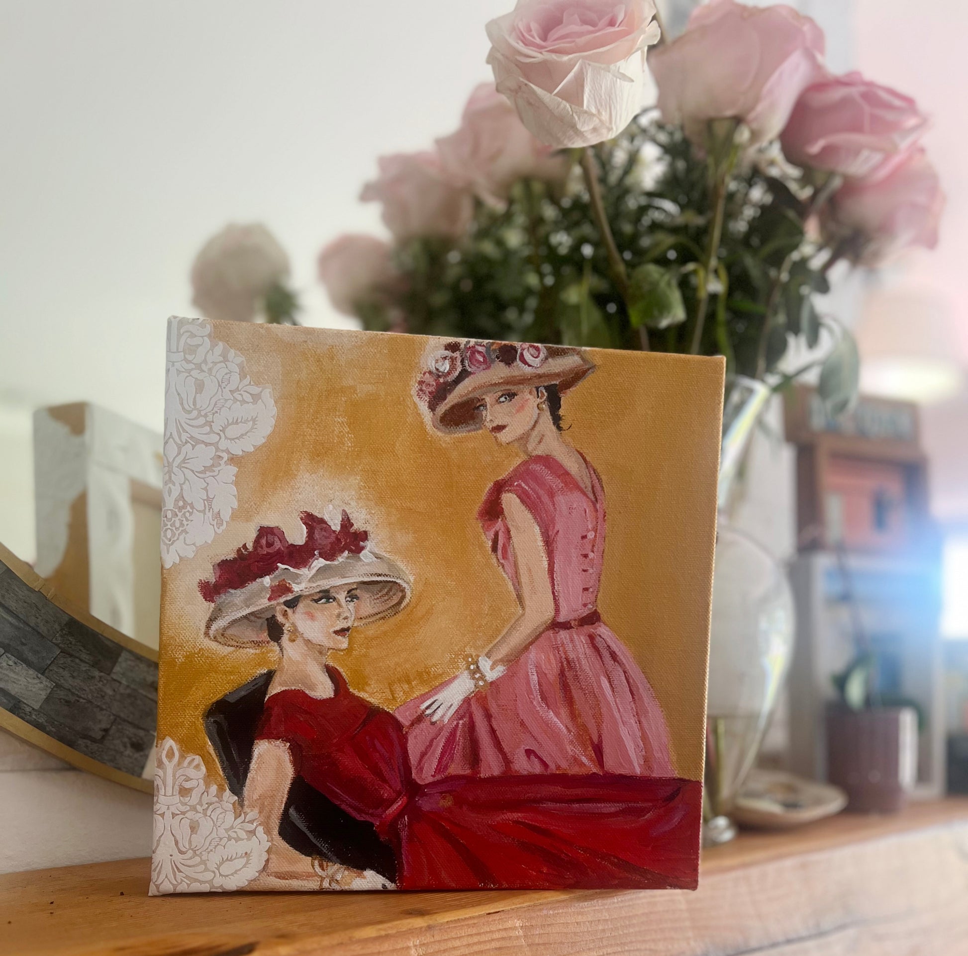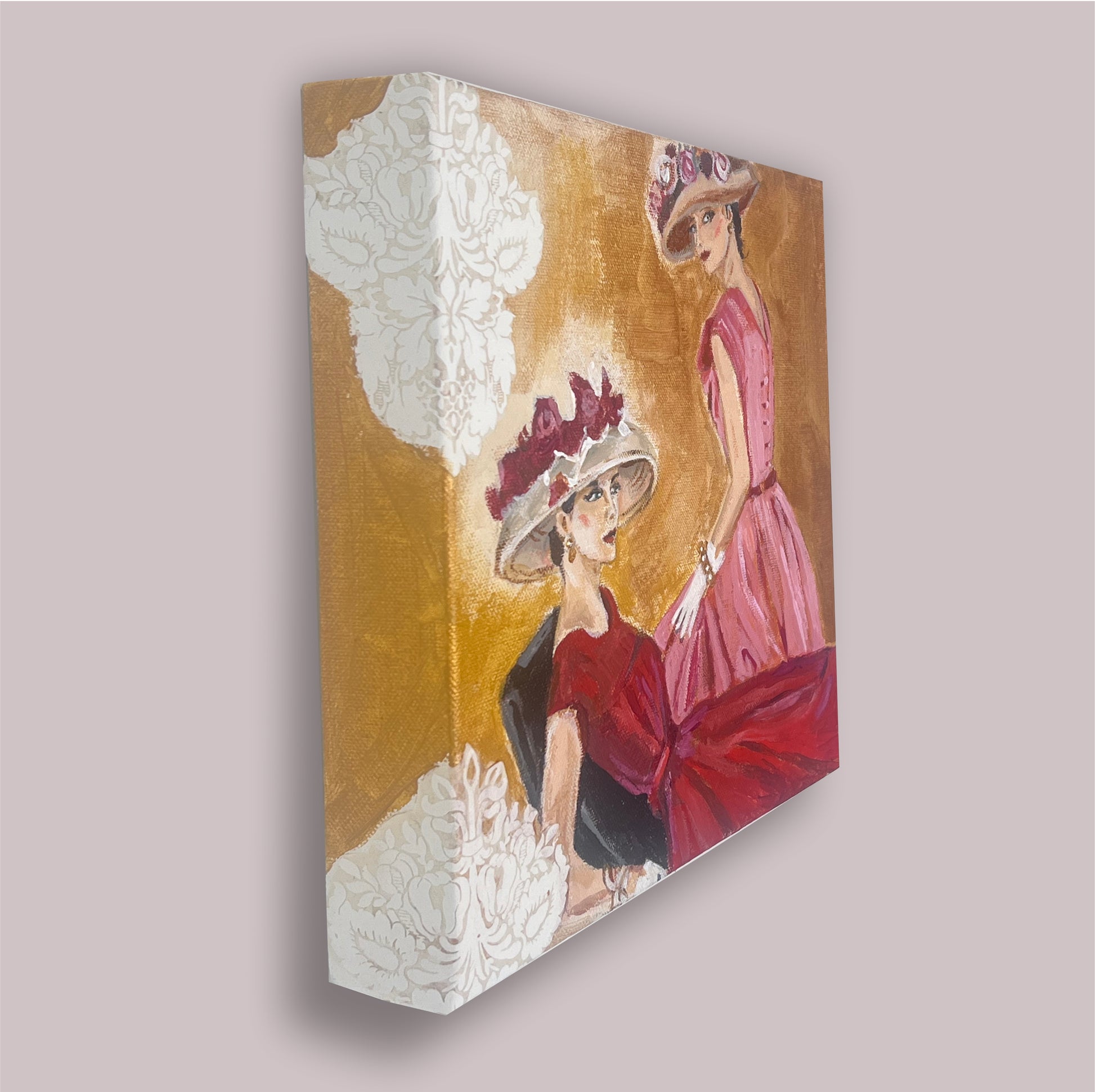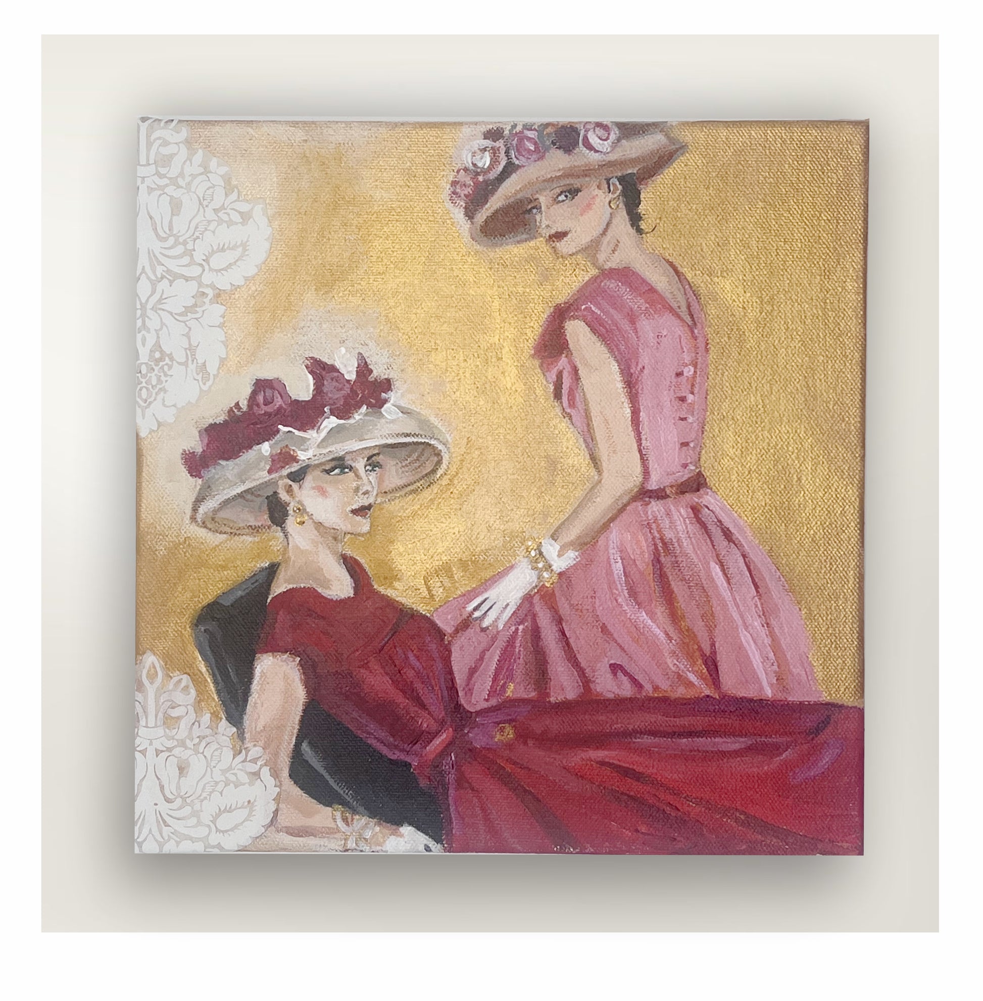 The Romantics, a depiction of two friends , their closeness is evident in their soft glances and harmonious composition. Decorated with an overlay of soft ivory flocking.